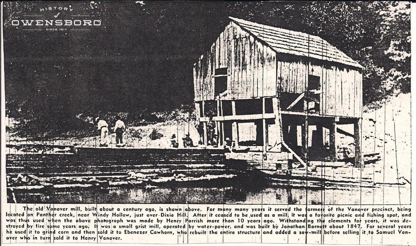 Newspapaper article in the 1930's discussing Vanover Mill